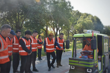11月7日,,,,中宏生物环境党总支书记、、、、执行总裁,,中宏生物数字环卫董事长兼总经理李刘宏率队调研合肥项目,,,,深入环卫作业第一线,,,,先后来到合肥项目翡翠路停车场以及政务区天鹅湖畔环卫作业现场,,观摩了项目全机械立体化保洁作